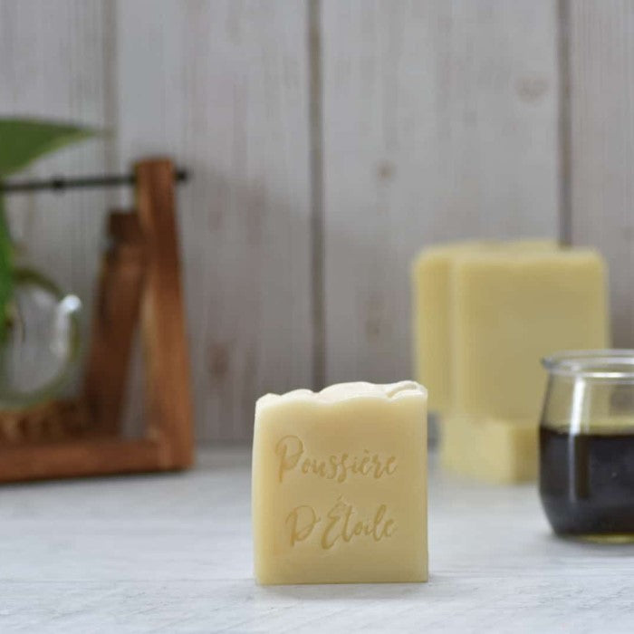 Revenons aux bases : les savons. Parce que oui, ce sont eux les stars de la savonnerie Poussière d’Étoile. Faits à froid, selon une méthode traditionnelle, ils conservent toute la glycérine naturelle bénéfique pour la peau.